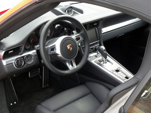 Bereits im November hatten wir das neue 911er Cabrio vorgestellt. Auffällig beim Design ist das Dach, das -wenn man es denn nutzen will- in seiner Form direkt mit der Dachlinie verbunden ist. Ganz klar, Porsche bietet hier mehr als nur eine provisorische Lösung für schlechtes Wetter, sondern vielmehr eine Kombination aus Stoff und fester Dachkonstruktion. Somit ist eine effektive Geräuschdämmung gegeben, die in 13 Sekunden aus- und wieder eingefahren ist. Durch die bekannte Z-Faltung, verschwindet es im Heck des 911ers, wobei hier dennoch eine stylische Formgebung vorzufinden ist. Ein Blick auf die cW-Werte verrät: Das Design wurde für die Aerodynamik optimiert! Kaum ein anderer Wagen dieser Klasse schafft es auf einen Luftwiderstandsbeiwert von 0,30. Auch der Heckspoiler trägt hierfür seinen Teil bei. Dieser fährt erst bei 120 km/h aus.