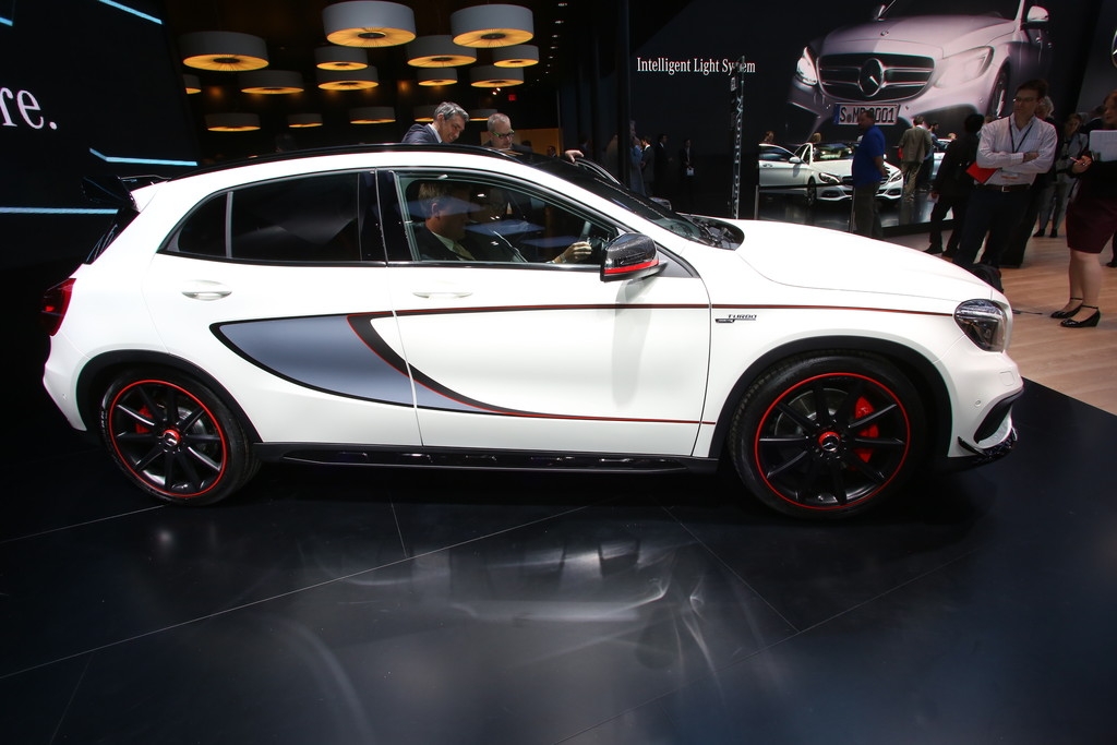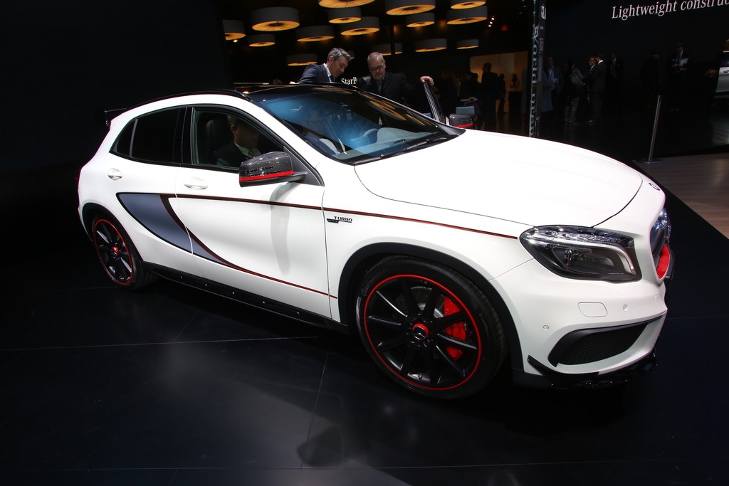 Irgendwie habe ich es ja nicht so mit tiefergelegten SUV. Mir will sich einfach der Sinn nicht erschließen, ein konzeptbedingt fahr-/quer-dynamisch mäßig geeignetes SUV nachträglich maximal tieferzulegen, mit riesiegen Niederquerschnittreifen und martialischem Spoilerwerk auszustatten. Aber offensichtlich gibt es eine Zielgruppe, die genau das spannend findet. Für eben diese hat Mercedes-Benz in Detroit ein neues Hochleistungskompakt-SUV im Gepäck, den Mercedes GLA 45 AMG.