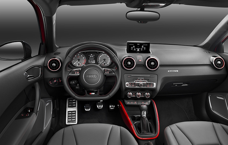 Beim Antriebskonzept wollten sich die Audi-Mannen (und -Frauen) aber nicht mit Kompromissen begnügen. Der neue S1 bleibt ein quattro. Gut so! – Auch wenn die Stammtisch-Szene somit auch wieder was zu meckern hat. „Was soll ein Kleinwagen nur mit Allradantrieb?“ höre ich sie wettern. „Vielleicht um etwas zügiger Brötchen holen als mit deinem 3-Tonnen-SUV“ möchte man ihnen zurufen. Denn zumindest auf der Fahrt zum örtlichen Bäcker dürfte der Audi S1 die eine oder andere Pole Position herausfahren, beschleunigt das Teil doch laut Werksangaben in 5,8 Sekunden von null auf hundert Sachen. Die Höchstgeschwindigkeit soll sich bei 250 km/h einpendeln, der Verbrauch bei sehr theoretischen 7,0 bis 7,1 Litern liegen. Hört sich alles nicht sooo schlecht an!