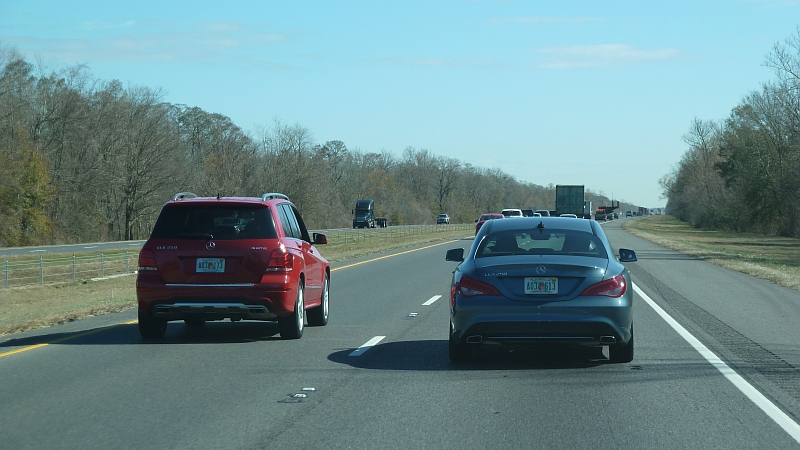 Die Stimmung unter uns ist phänomenal. Es dauert nicht lange, bis die Walkie Talkies in den Autos Janis Joplin und ihren Mercedes-Benz-Song funken. Und wir erregen Aufsehen. Bei einem ersten Zwischenstopp am Louisana Welcome Center zücken einige Amerikaner ihre Handys und machen Bilder. Favorisiertes Modell: CLA 45 AMG: „My mothers drives a Mercedes, I told her THIS is the car she should have bought“, erzählt eine Amerikanerin lachend.