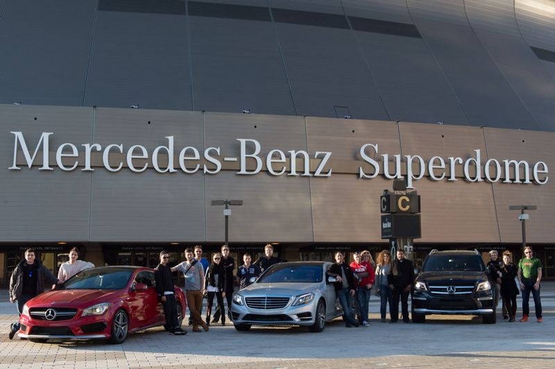 Jedenfalls: Gut gestärkt wartet im Anschluss ein unfassbar riesiges Gebäude auf uns. Welcome at the Mercedes-Benz Superdome! In erster Linie Stadion für Football-“Saints“, bieten die 1,9 Millionen Squarefeet auch genügend Platz für andere Veranstaltungen wie Wrestling-Kämpfe oder Konzerte. Als Hurrikan Katrina 2005 New Orleans überschwemmte, fanden hier Abertausende Menschen Obhut. Von den Zerstörungen aber ist in 2014 nichts mehr zu sehen. Statt dessen zeigen heute beispielsweise überdimensional große Fotografien an Gate C die Historie diverser Modelle mit dem altbekannten Stern, und ein Besuch in die Umkleidekabinen der Saints sowie das Betreten des Spiel-Rasens, der jedoch gerade abgetragen wird, lassen uns beinahe vergessen, weshalb wir eigentlich hier sind.
